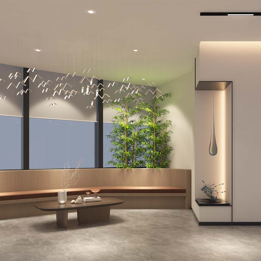 從空間布局上來看,170平的辦公會所設(shè)計裝修可利用面積確實不算大,又要滿足以接待客戶為主的辦公、娛樂需求,曾工巧妙利用環(huán)窗位置條件,結(jié)合“去前臺化”設(shè)計與全景落地玻璃窗,打造簡約接待等候區(qū);獨立辦公室與小型茶桌相結(jié)合,是正常辦公區(qū)域;休閑區(qū)域則是由茶桌與麻將桌等相結(jié)合,預(yù)留足夠空間安置娛樂裝置;