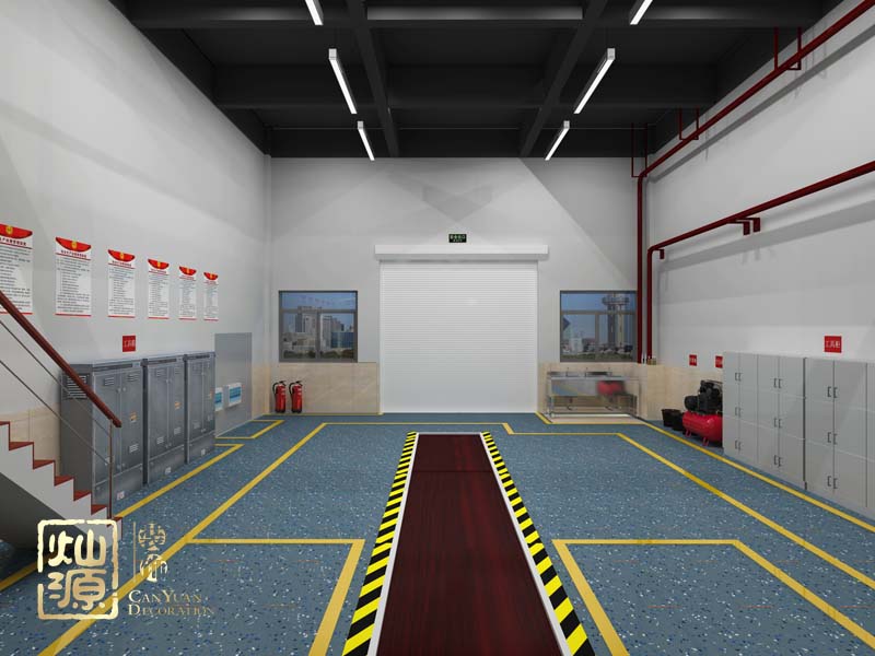 車間改造設(shè)計說明:本案例在原有使用的基礎(chǔ)上,進(jìn)行翻新改造設(shè)計,減化功能,重新進(jìn)行地面,墻面、和頂面的改造,加裝了葫蘆電動吊機(jī)設(shè)備,整個裝修設(shè)計符合廠房特殊場合的相關(guān)要求,地面使用了鋼筋混凝土預(yù)制,加金鋼砂地面打磨、硬化處理,使之堅固耐磨,采用的中心貨架每層可以承載3000KG,燈具照明也是使用有防爆要求的LED照明燈具,設(shè)計上著重考慮安全的原則、其次是實用性,再次考慮滿足用電量的基本需求。