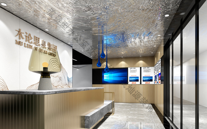 考慮到本次木倫思集團(tuán)南寧辦公室設(shè)計(jì)裝修案例中,客戶(hù)產(chǎn)品主要為富含微量元素的“礦泉水”,再結(jié)合客戶(hù)主要裝修訴求,陳工決定以“水生萬(wàn)物生”為方案主題,利用墻壁空間,充分發(fā)揮燦源裝飾特色墻體文化設(shè)計(jì)。