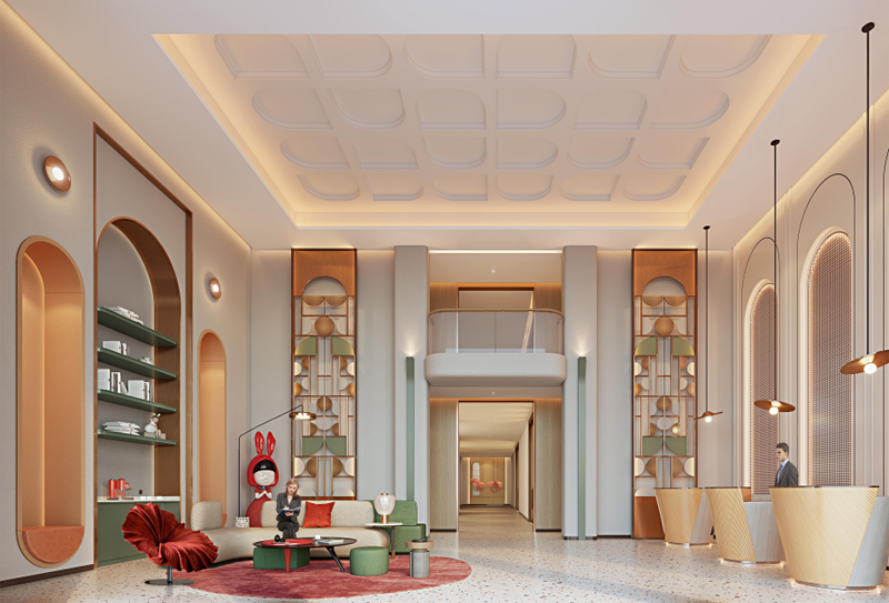 然后是提供辦理入住退房等手續(xù)、等候休息等功能的前臺大廳部分,單人單個前臺桌的設(shè)計,別致好看的同時還能提升辦理體驗感;若是有團體顧客需要開辦會議怎么辦?別著急,可容納60-80人的小型會議廳明亮又素雅,期待您的光臨!